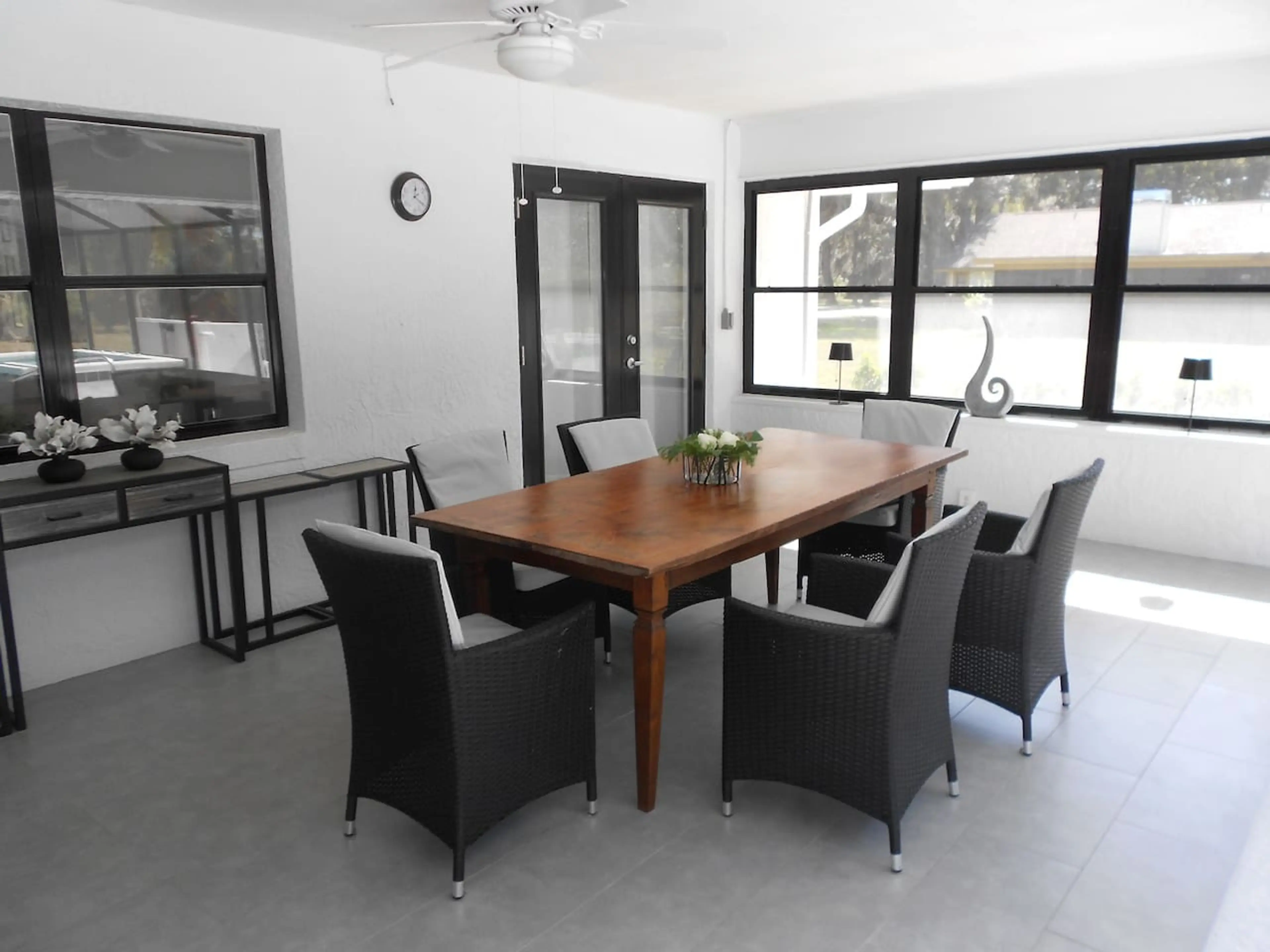 This is a spacious 3-bedroom and 2-bathroom house with a swimming pool that is located in a small neighborhood with lots of Palms and old Oak trees. Besides squirrels and regular birds, we've been visited by big owls and sandhill cranes that give you the feeling of not leaving the relaxing lanai. We...